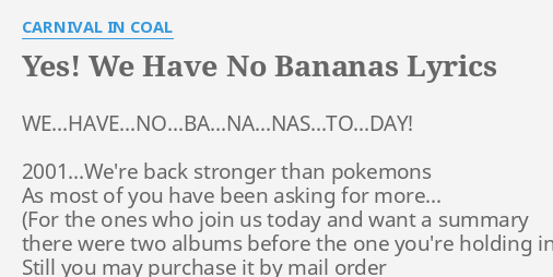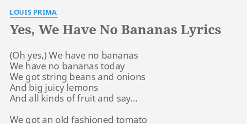 / when you ask him anything, he never. We have no bananas today. Yes, we have no bananas. We have no bananas today. business got so good for him that he wrote home today, send me pete and nick and jim; More images for yes we have no bananas lyrics »